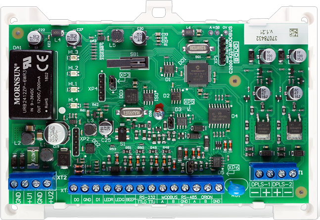 | Контроллер обеспечивает гальваническую изоляцию двух разделённых групп контактов: | клеммы вводов питания, интерфейс "RS-485(Орион)", интерфейс "RS-232", интерфейс "RS-485(Modbus)", подключение считывателя | |