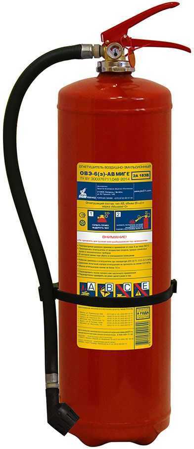 Условное обозначение огнетушителя при заказе Огнетушитель ОВЭ-6(з) - АВ «МИГ Е» 2А, 183В