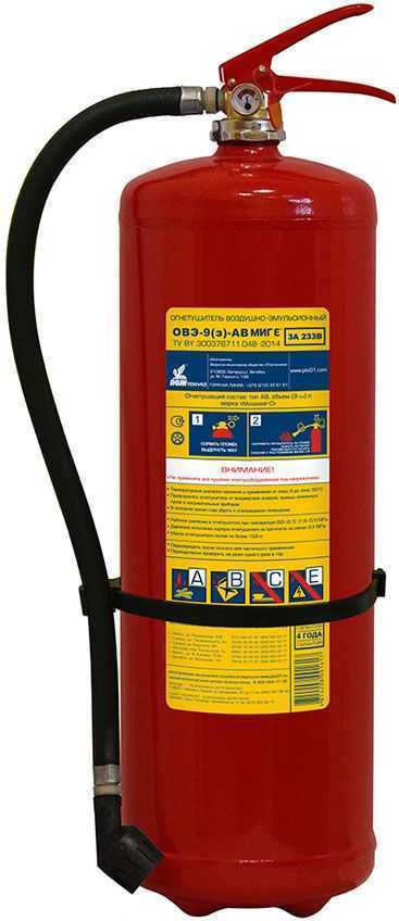 Условное обозначение огнетушителя при заказе Огнетушитель ОВЭ-9(з) - АВ «МИГ Е» 3А, 233В