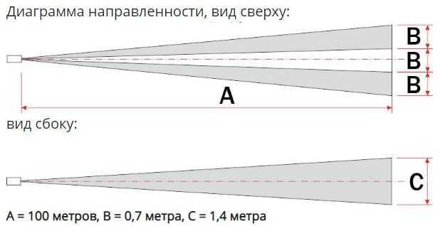 Размер зоны обнаружения на максимальной дальности - 1,4 x 2,1