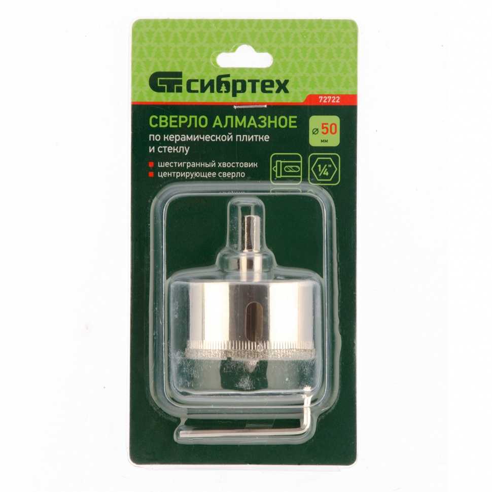 Сверло по керамической плитке и стеклу, 50 х 55 мм, шестигранный хвостовик, с центрующим сверлом Сибртех Сверла алмазные по стеклу и керамической плитке в Петропавловск-Камчатске